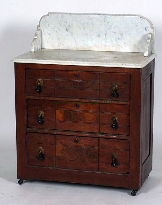 SoldWalnut Victorian marble top wash standWalnut Victorian marble top commode with long backsplash, 40 in. T, 40 in. W, 20 in. D. This highly carved commode is in done in the rococo revival mannerSee Sold Price