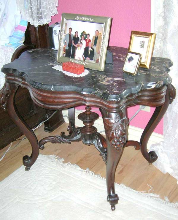 Walnut Victorian Parlor Table with Black Marble Top