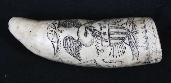 POLYCHROME SCRIMSHAW WHALE'S TOOTH WITH AMERICANA MOTIFS 19th Century Length 5.5".Eldred's4.8(484)$5002 days Left