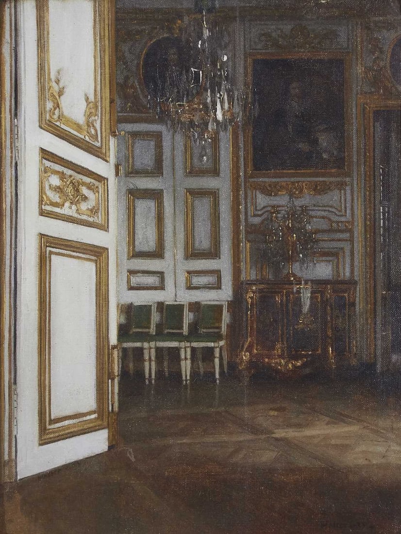 SoldWalter Gay paintingWalter Gay (American 1856-1937), Palace Interior, oil on canvas, signed lower right, canvas: 24"h x 18"w, overall (with frame): 31.5"h x 25"wSee Sold Price