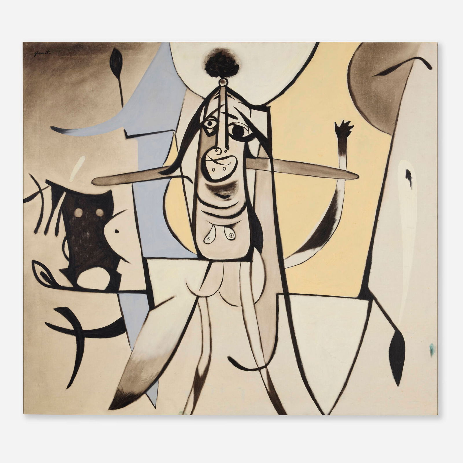 Walter Quirt (American. 1902-1968) Figure Composition. Signed lower right. Ink and Gouache on Paper.Walter Quirt (American. 1902-1968) Figure Composition. Signed lower right. Ink and Gouache on Paper. Measuring 49-1/2 x 29 1/2 inches. Famed under Plexiglas. (Cond: some toning to border edges and wat