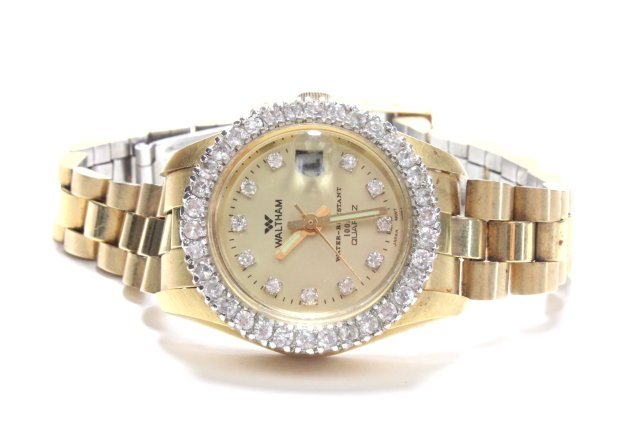 Waltham quartz watch with diamond bezel