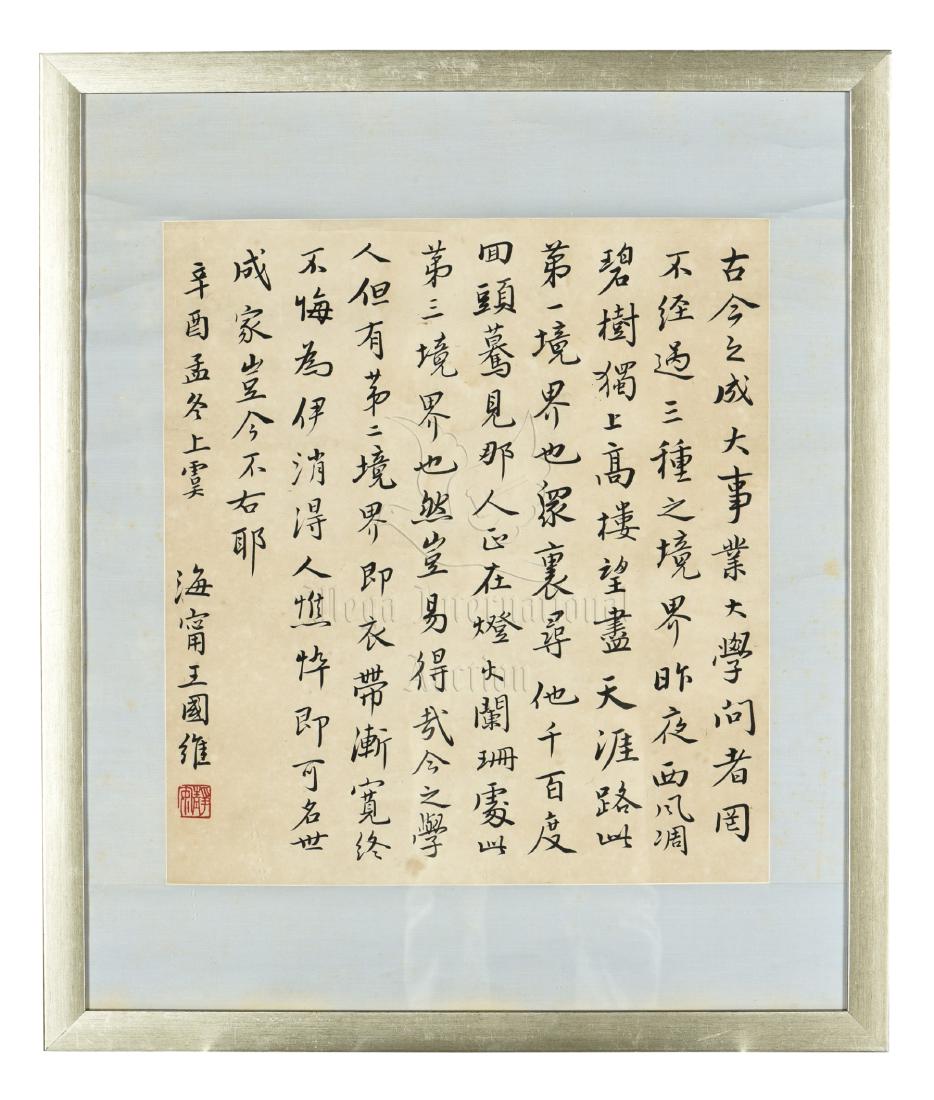 WANG GUOWEI: FRAMED INK ON PAPER CALLIGRAPHY