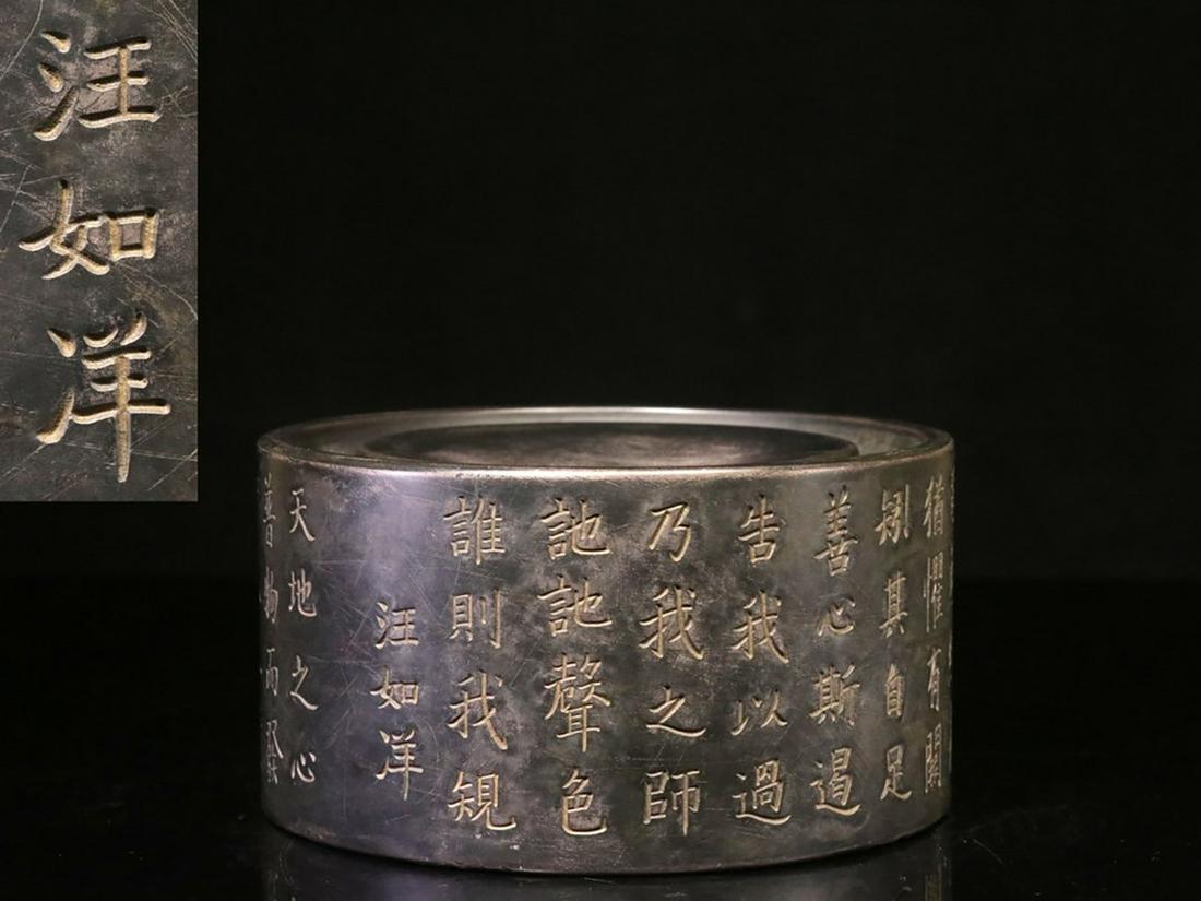 Wang Ruyang Mark, Handmade Engraved Round Inkslab, 1.65