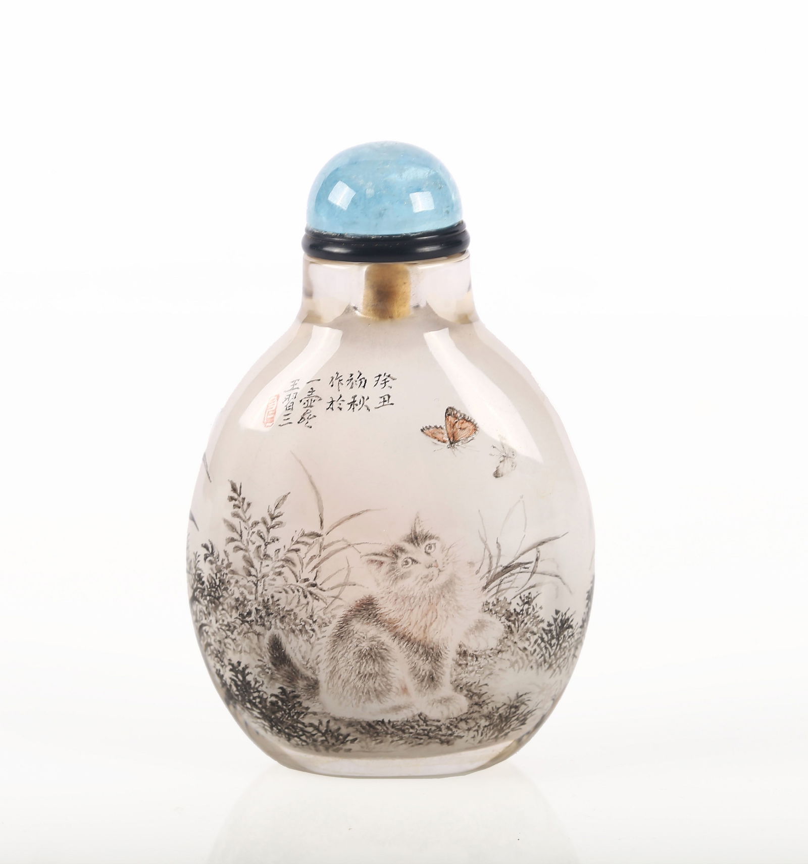 Wang Xisan: Crystal Inside Painted 'Cats' Snuff Bottle