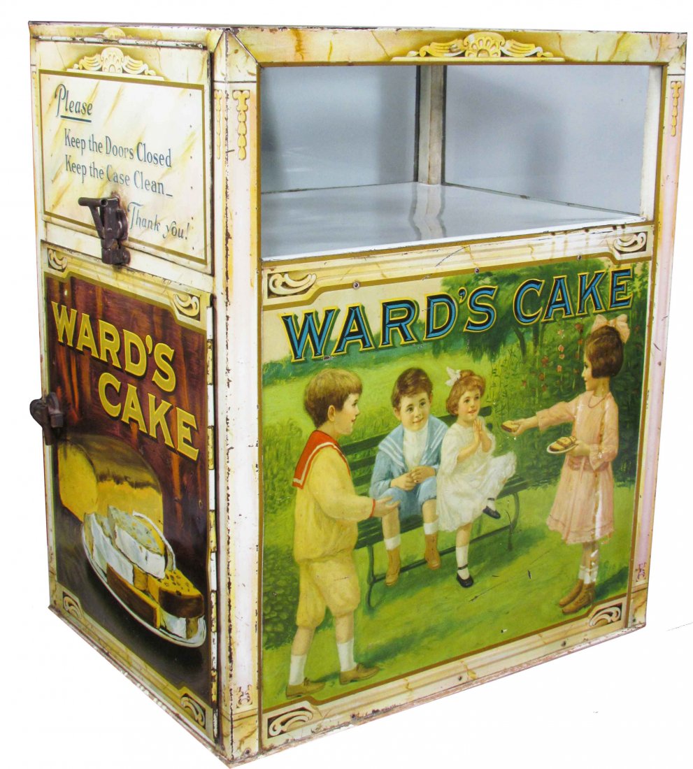 SoldWard's Cake Tin Lithograph & Glass Country Store Counter Display Cabinet 20.5 inchesStep into the rich history of baking with this vintage Ward's Cake Tin Lithograph & Glass Country Store Counter Display Cabinet. Standing at 20.5 inches, this charming piece hails from the ContinentalSee Sold Price