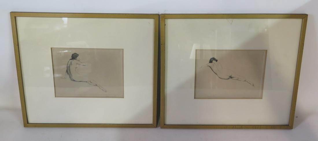 WARREN DAVIS (2) SIGNED ETCHINGS, RECLINING NUDE,