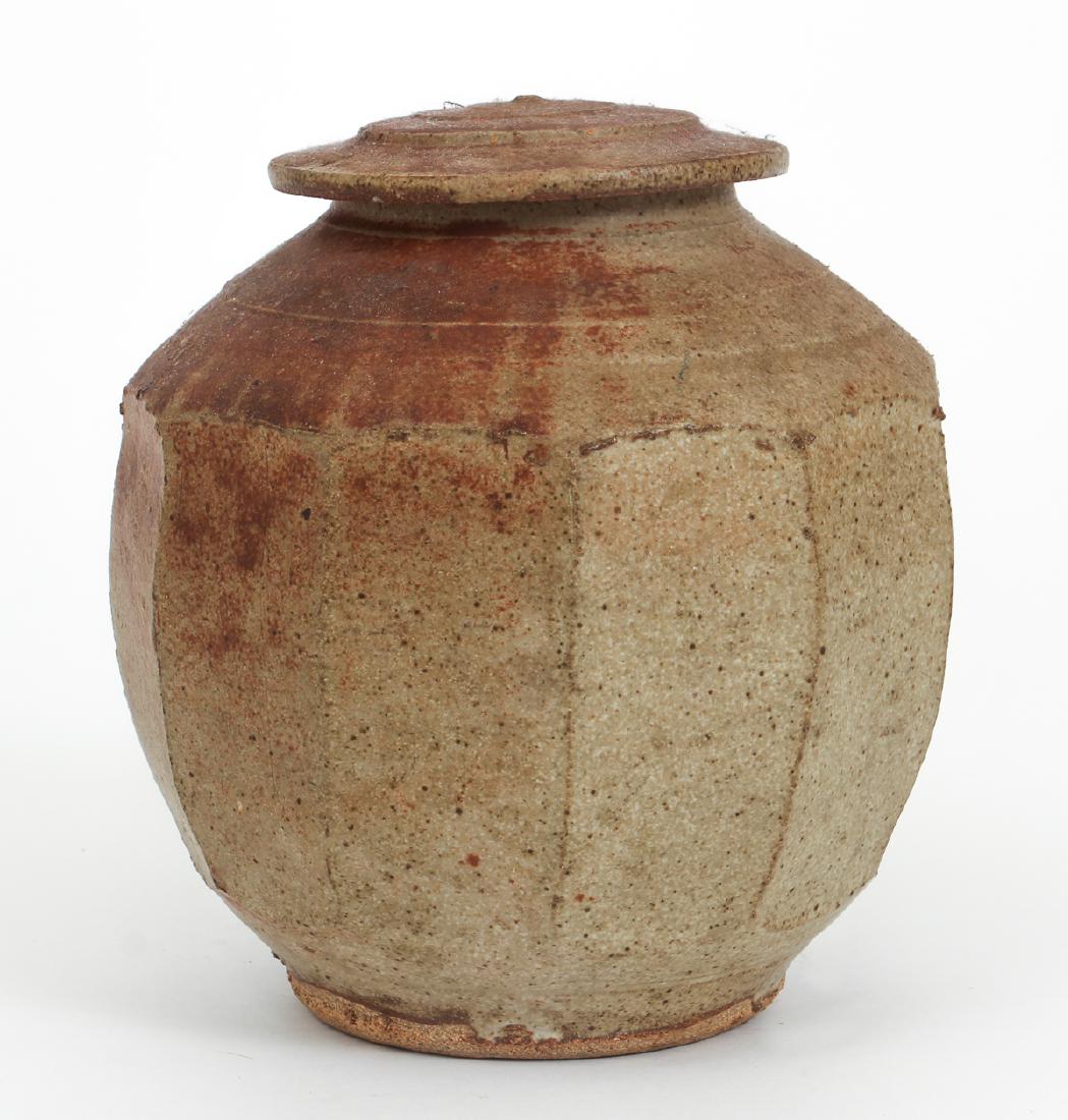 SoldWarren MacKenzie Ceramic Lidded Vessel - MarkedWarren MacKenzie (American, 1924-2018). Large studio ceramic lidded vessel or jar. Glazed stoneware, marked along the footrim.Warren MacKenzie was a renowned Minnesota studio potter. A student of BernSee Sold Price