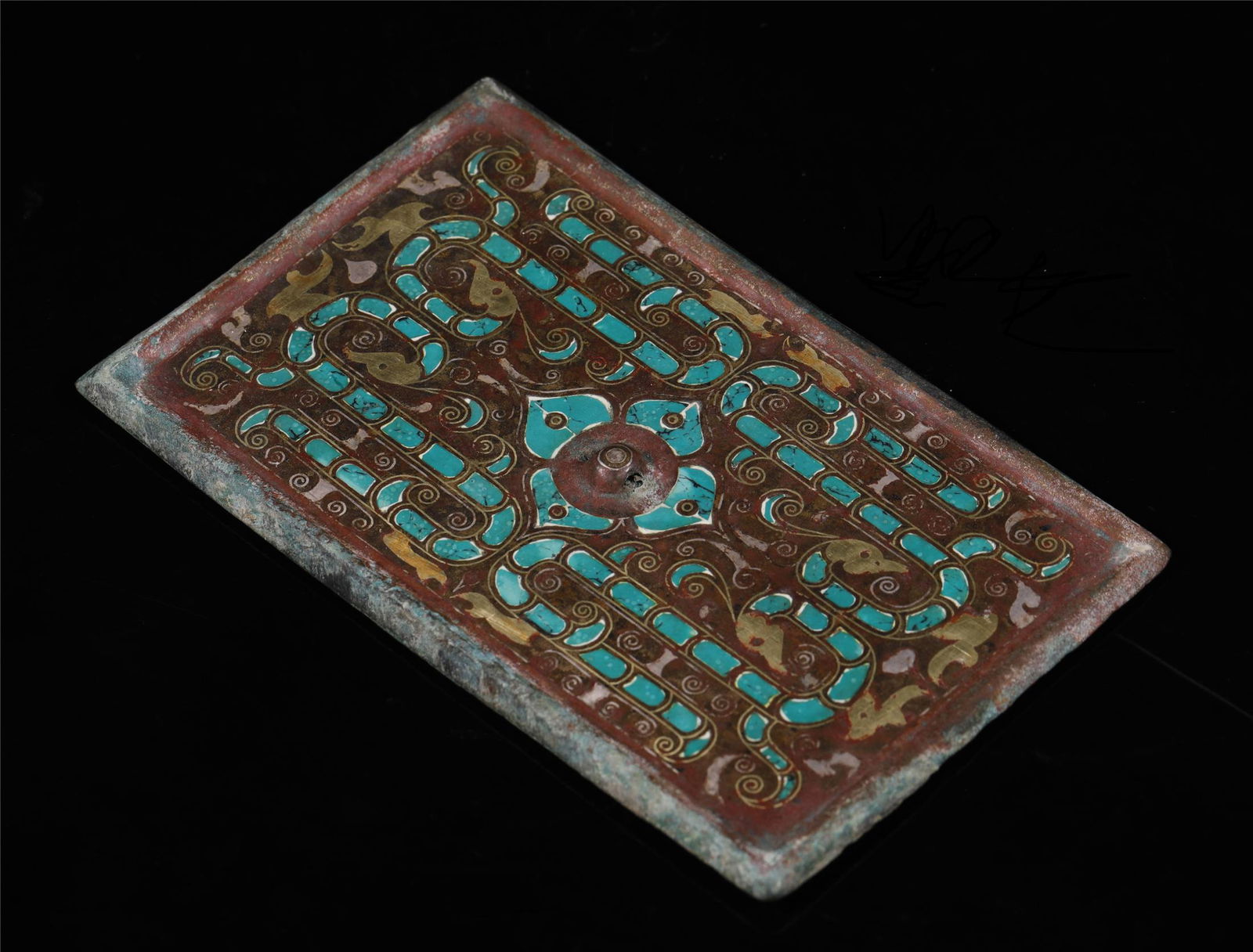 Warring State-Gold Silver on Bronze w/ Gem Square