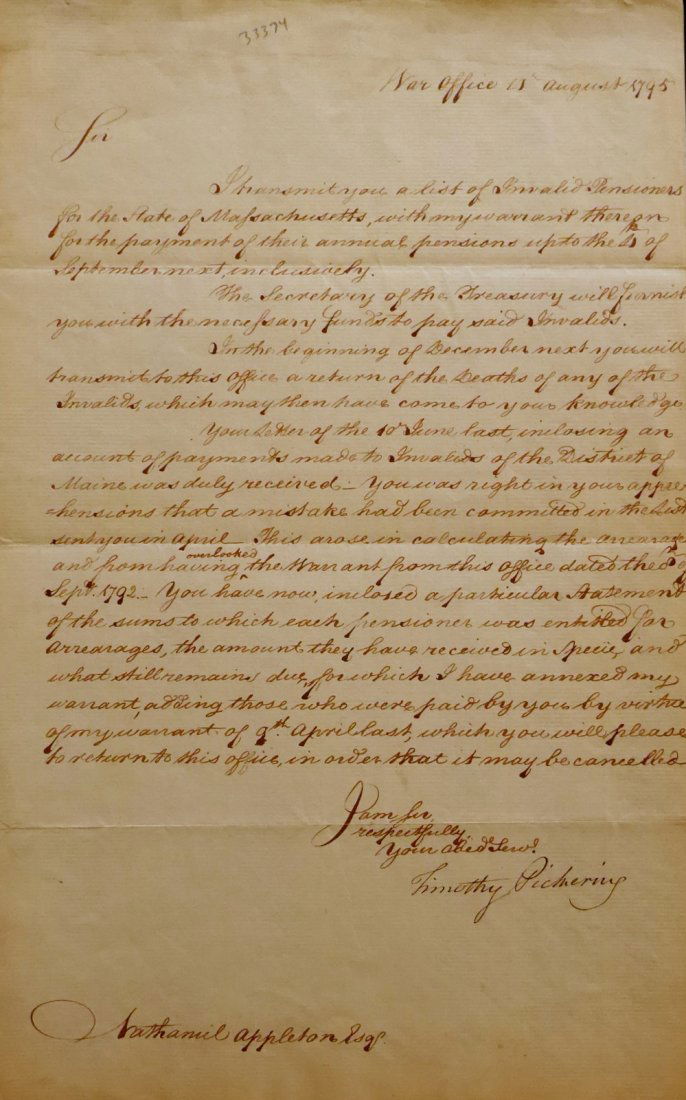 Washington Adjutant TIMOTHY PICKERING - LS 1795