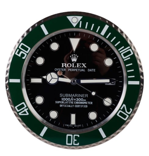SoldWatch dealer display Rolex wall clock, HulkWatch dealer display Rolex wall clock, Hulk, quartz movement, 13 1/2" dia, running at time of testingSee Sold Price