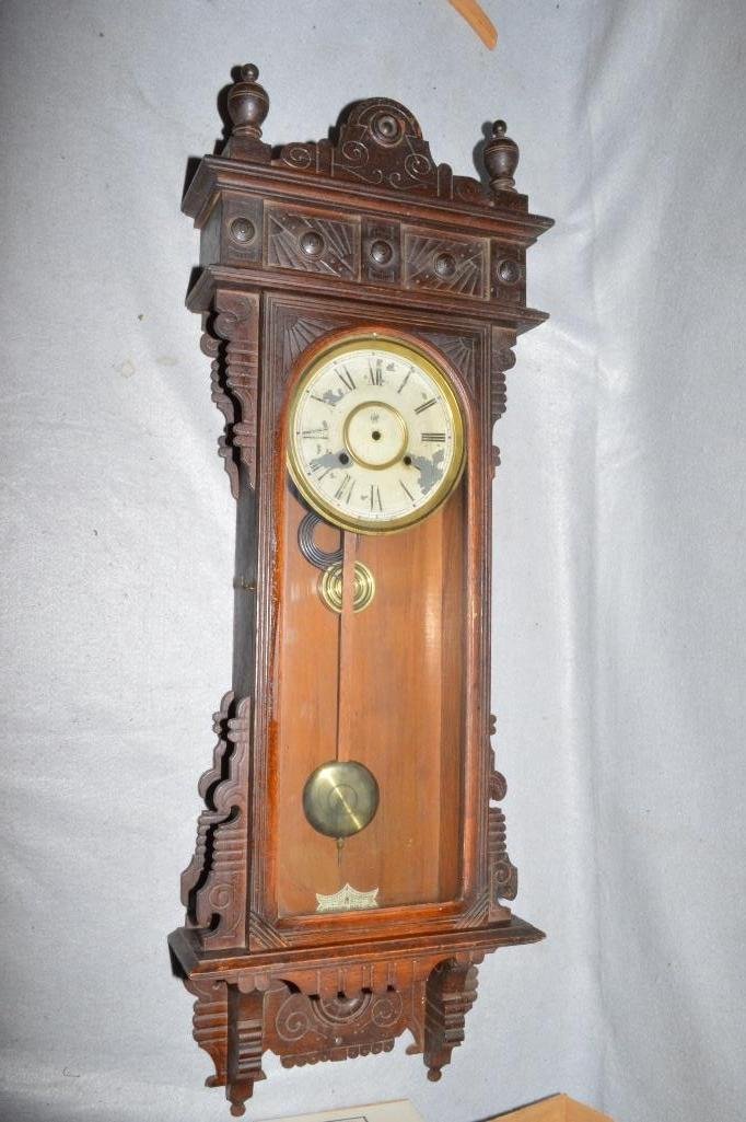 Antique wall clock in the Vienna Regulator style. The architectural case is constructed from walnutUniques and Antiques, Inc.4.7(873)$100Apr 01, 2026