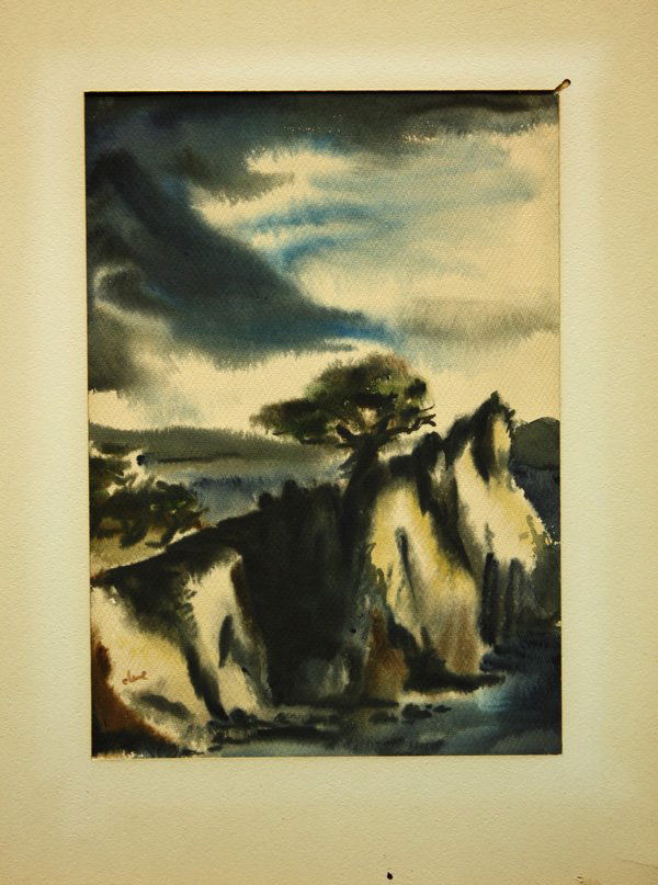 SoldGoertz, Norton (1915-1990) untitled mountain tree, watercolorNorton Goertz (1915-1990) untitled mountain tree, watercolor, signed lower right, good condition, image size: 28x19.5 inches. Goertz studied art with A.R. Ebel and was a member of the Kansas WatercoloSee Sold Price