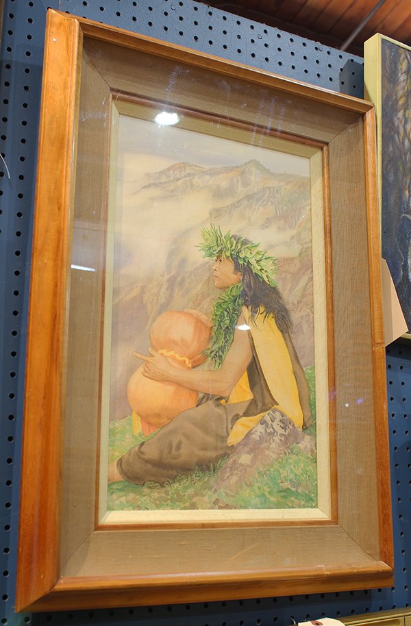 Nat Davis Signed Watercolor Wheelbarrow in Gold Frame