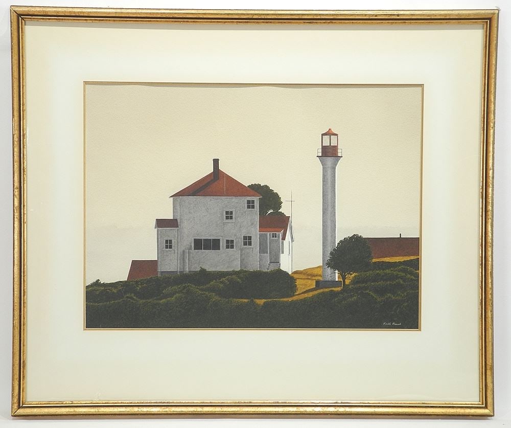 Watercolour signed Keith Hiscock, 16 x 22", "Lighthouse".