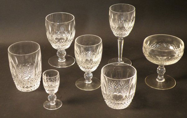 Sold27 PIECES WATERFORD "COLLEEN" PATTERN CUT COLORLESS CRYSTAL STEMWARE,27 PIECES WATERFORD "COLLEEN" PATTERN CUT COLORLESS CRYSTAL STEMWARE. Including 10 red wind goblets, 11 champagne flutes and six brandy sniftersSee Sold Price