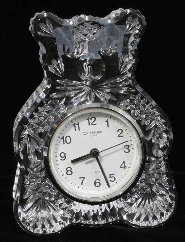 WATERFORD CRYSTAL BEAR-FORM CLOCK, H 6"