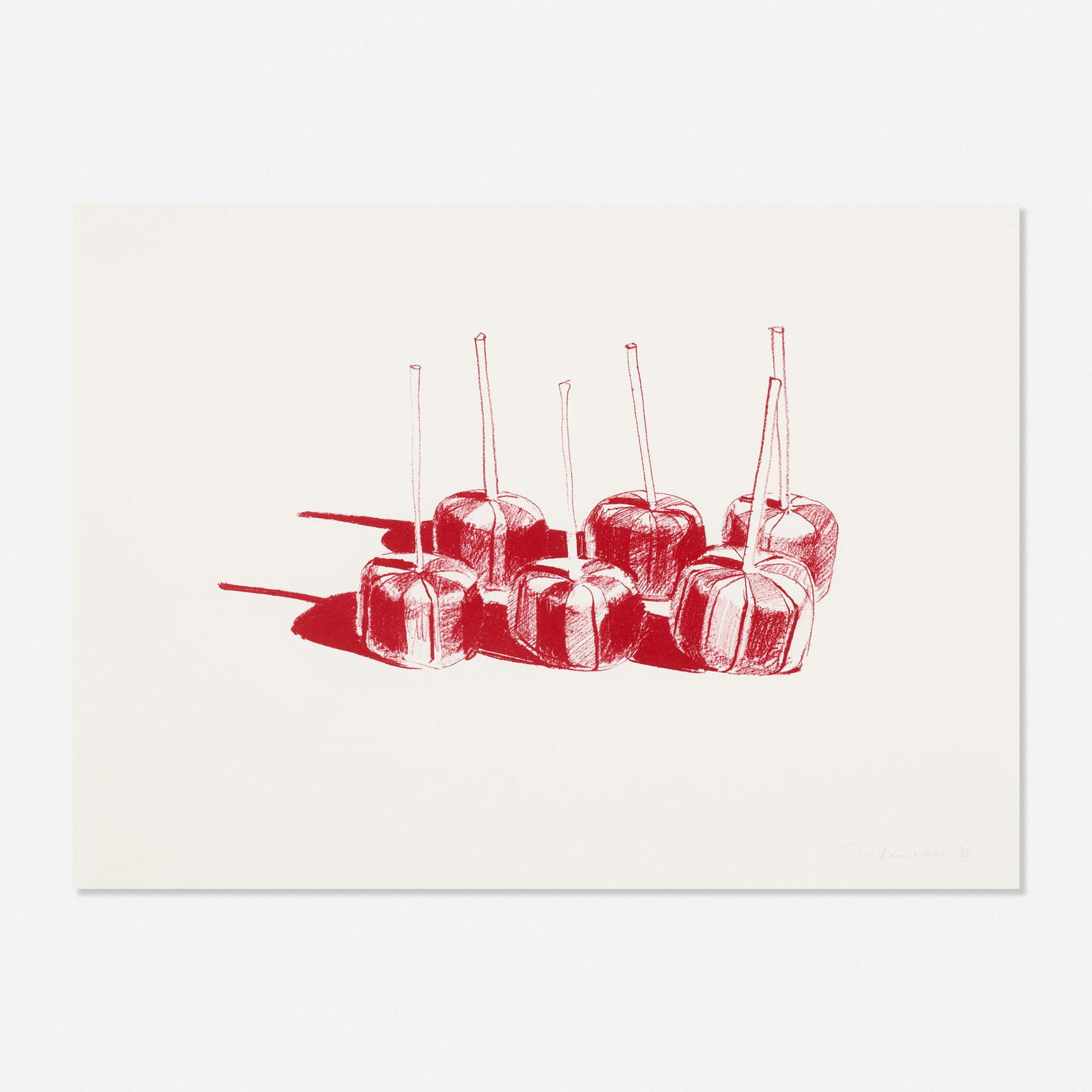 Wayne Thiebaud - Candied ApplesMar 26, 2026Wayne Thiebaud - Candy Apples22 hrs LeftWayne Thiebaud - Dark Cones22 hrs LeftWayne Thiebaud - Four FlavorsMar 19, 2026Wayne Thiebaud - CherriesMar 19, 2026Wayne Thiebaud - Eight LipsticksMar 19, 2026Wayne Thiebaud (1920-2021); Paint Cans;Wayne Thiebaud - Seven LipsticksMar 19, 2026Wayne Thiebaud - Row of Ties (After)Feb 26, 2026Wayne Thiebaud - Tied TiesFeb 26, 2026Wayne Thiebaud - LunchMar 12, 2026Wayne Thiebaud - Palm Road (After)Feb 26, 2026Wayne Thiebaud - Lipsticks22 hrs LeftWayne Thiebaud - Sticks in a JarMar 19, 2026Wayne Thiebaud - A La CarteMar 20, 2026Wayne Thiebaud - Paint Cans (After)Feb 26, 2026