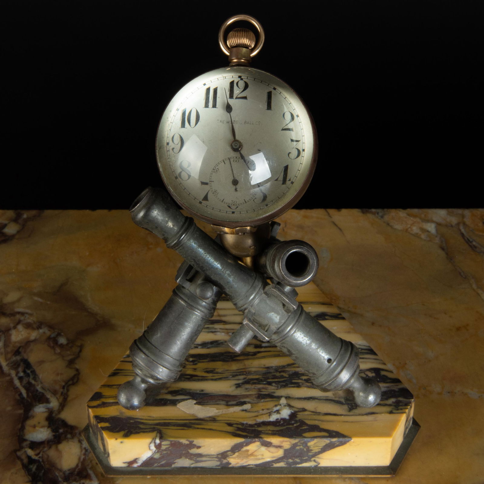 Webb C. Ball Clock on Bronze Cannon Form Stand