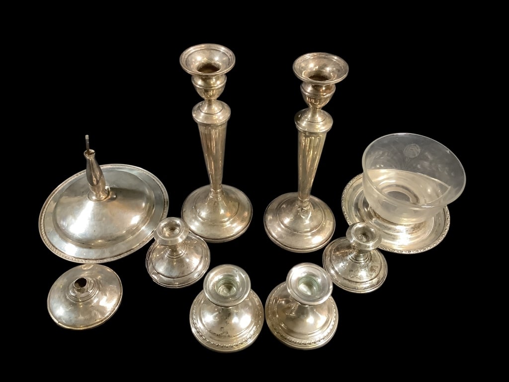 Random Silver Plated Lot + Candle Snuffer2 days LeftLot of Weighted Sterling Silver Pieces4 days LeftWEIGHTED STERLING SILVER LOT6 days LeftLot of Weighted Sterling Silver Candlesticks4 days LeftCANDLE HOLDERS MENORAH VICTORIAN STYLE LOT OF 7Mar 28, 2026STERLING SILVER lot to include pair weighted bottom candlesticks, (2) weighted bottom bud vases &Apr 10, 2026STERLING SILVER estate lot of (11) pcs. Including salt & pepper shakers, (6) small salt & pepperApr 10, 2026Estate lot misc. STERLING SILVER including one pair weighted bottom candlesticks, and misc.Apr 10, 2026Lot of Sterling Silver, 3 Sterling Silver Weighted Bud Vases, 2 Sterling Silver Weighted Compotes14 hrs LeftLot Sterling and Sterling Weight Table ArticlesMar 21, 2026Collection of Weighted Silver Candlesticks4 days LeftDECO METAL VASE W PAIR MATCHING CANDLESTICKS 16"Mar 09, 2026Silverplate and Sterling SilverMar 20, 2026Sterling Silver Candlesticks, Vases, etc.Mar 20, 2026Collection of Sterling Silver Hostess Wares1 day LeftTwo Pairs of Sterling Silver Candlesticks1 day Left