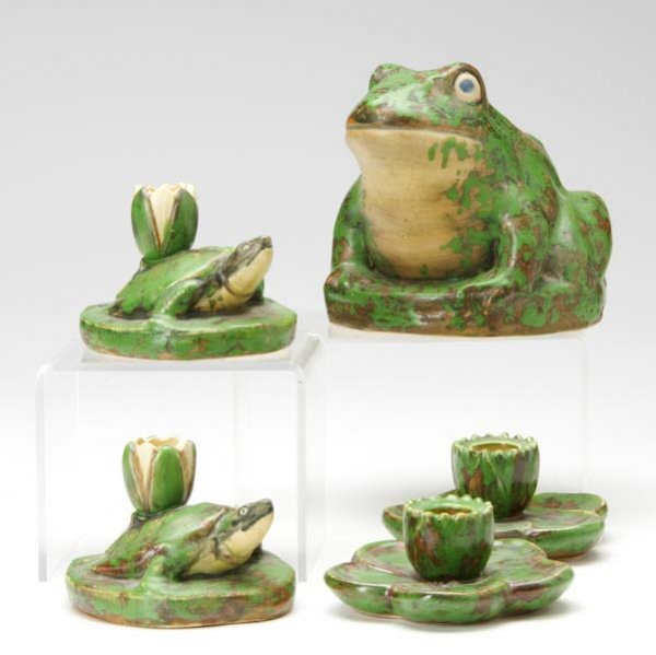 Weller Coppertone Frog Figure, Along With Two Pai