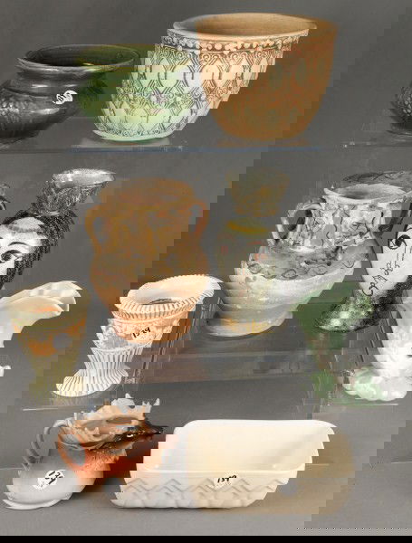 Lot of 4 Antique Ceramic Pitchers & Crock1 day LeftNATIVE AMERICAN POTTERY LOT4 days LeftLOT OF GERMAN POTTERY, STEIN / MUG6 days LeftWeller and Occupied Japan Pottery Vase and Oblong Dish Lot of 2Mar 16, 2026Frankoma (16) Pottery Assortment5 days LeftWeller Rosemont Cameo Vintage Art Pottery Color Ceramic VasesMar 01, 2026Weller Roba Bouquet Cornucopia Art Pottery VaseMar 01, 2026Weller Bouquet Elberta Candis Pottery Ceramic Vases Flower FrogsMar 01, 20266 Stoneware Crocks & PitcherMar 06, 202635 Miniature Vintage Stoneware Crocks & JugsMar 17, 2026A Collection of Chinese StonewareMar 03, 2026Five small jars China, 20th century264 Lots AwayWeller Bonito Vintage Art Pottery Ceramic Vase Bowl And PlanterMar 01, 20264 Ceramic VasesMar 06, 2026Weller Greenbriar Malverne Vintage Art Pottery Ceramic VaseMar 01, 2026Roseville Weller Vintage Art Pottery Vases BowlsMar 01, 2026