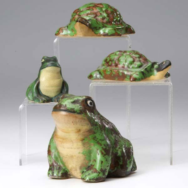 WELLER Four Coppertone figures, two frogs and two