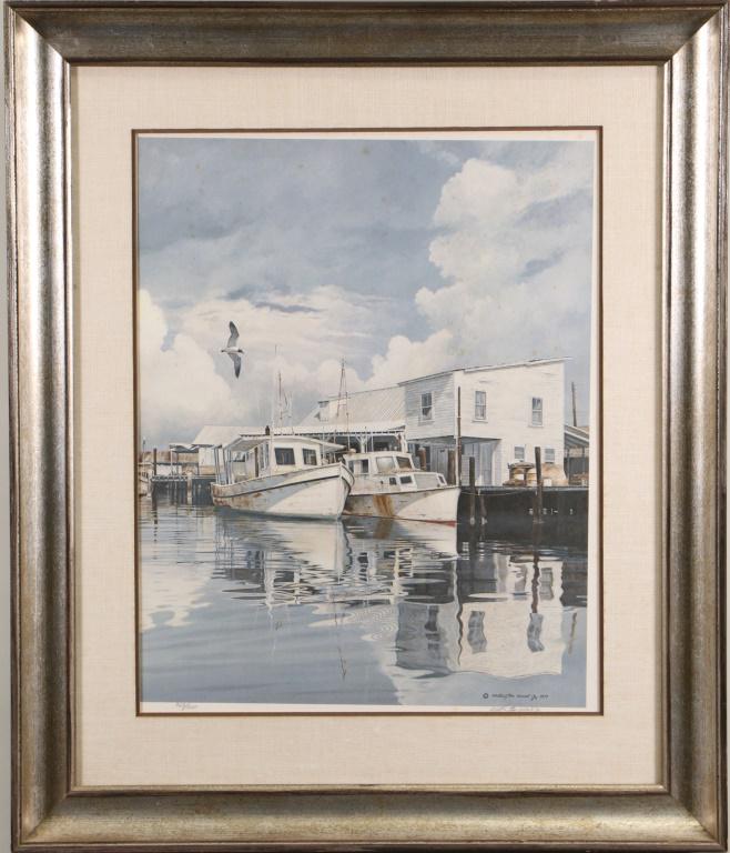 WELLINGTON WARD "DOCK SCENE" SIGNED LITHO