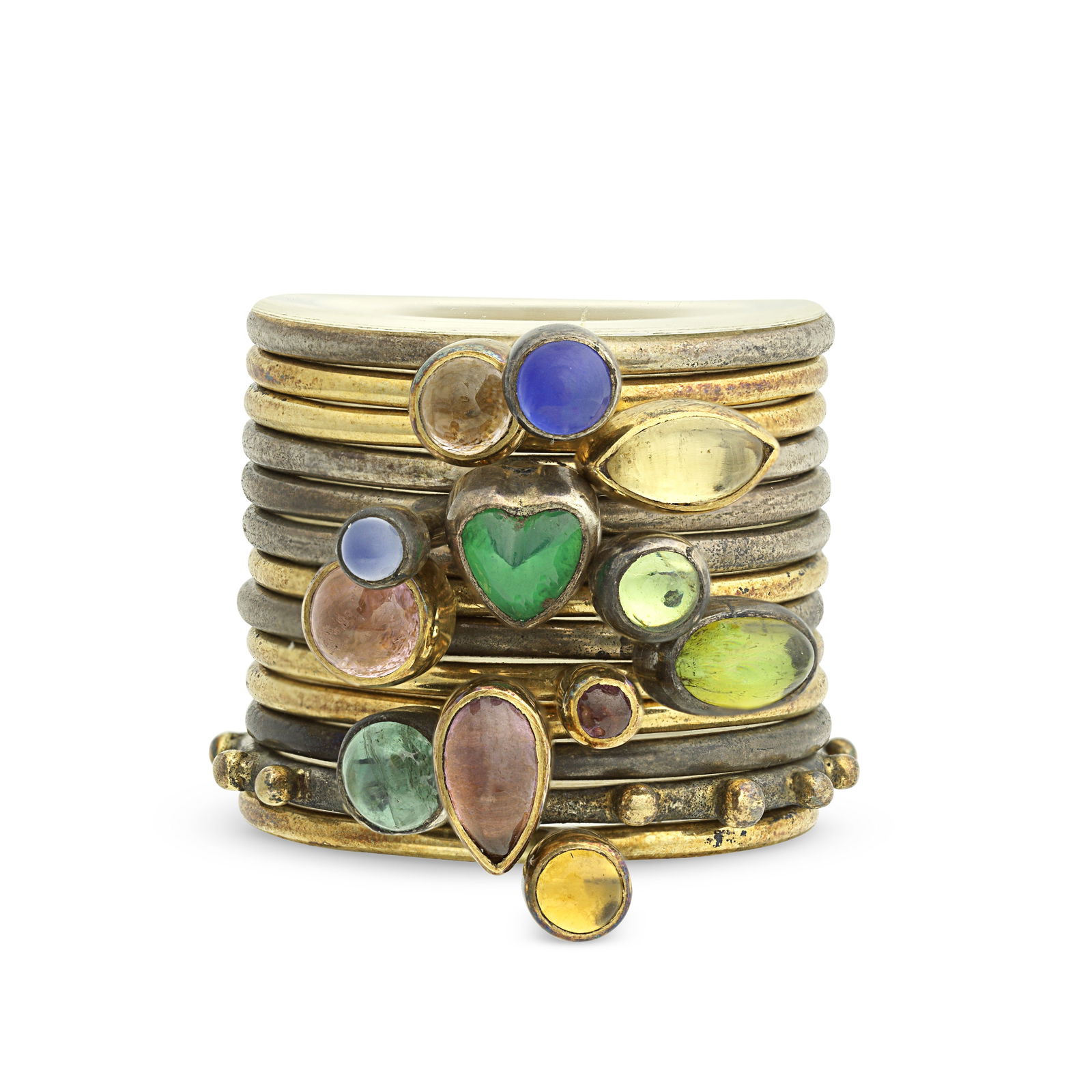 WENDY RAMSHAW: GEM-SET RING STACK,