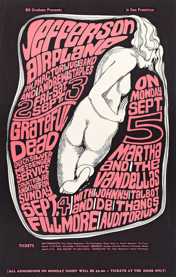 SoldWes Wilson BG-39 Jefferson Airplane, 1966Heading: Author: Wilson, Wes Title: Jefferson Airplane / James Cotton Chicago Blues Band / Moby Grape at the Fillmore Auditorium Place Published: San Francisco Publisher: Date Published: 196See Sold Price
