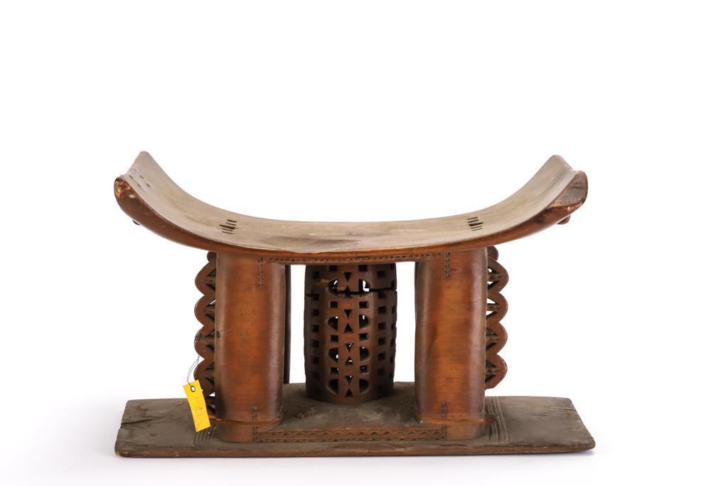 A CARVED WOOD 'CUBIST' CEREMONIAL STOOL (DWA), ASHANTI PEOPLE