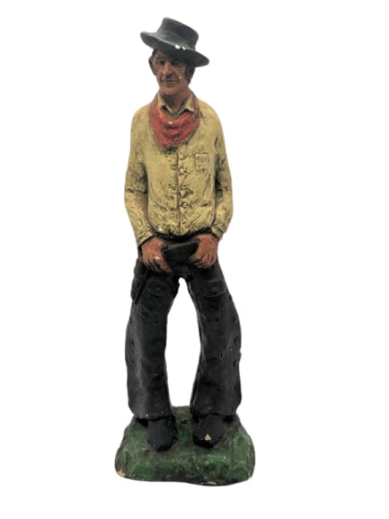 Vintage Western Cowboy Figurine Rustic American Folk Art Sculpture 16 in