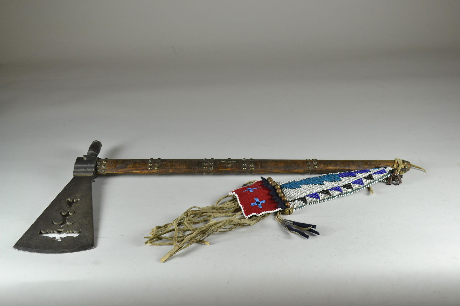 Vintage Knife Parts LotFeb 27, 2026Buffalo Face Tomahawk Pipe with beaded drop and 24" tacked handle/stem.Feb 28, 2026Sioux Tomahawk Pipe 18" with Beaded Drop 1893 Indian Head Penny and bells, Bone mouth piece.Feb 28, 2026Large Native American Trade Tomahawk w/ Beaded and Leather Fringe Drop Indian War Period c.1880-1905Feb 28, 2026Native American Trade Peace Pipe Tomahawk with Gun Barrel Bowl and Beaded FringeFeb 28, 202624" Spontoon Pipe Tomahawk Bat Design with Beaded Drop with bells and silver cross. Tacked handle.Feb 28, 2026Pipe Tomahawk with Quilled Drop with Northwest Company Beaver Token. 18" tacked handle 11"Feb 28, 20261800's Native American Plains Trade Tomahawk / Pipe Axe – Osage Indian Use – Beaded Drop &12 hrs LeftGorgeous Late 19th C. Spontoon PIPE TOMAHAWK Chief Crowfoot Presentation InscriptionMar 28, 2026Hand Forged Brass Spontoon Pipe Tomahawk w/Beaded Drop. Rare type of Shoshone or Arapaho 25" PipeFeb 28, 2026Tomahawk Trade Pipe with Beaded Handle Indian Artifact ArrowheadMar 01, 20261800's Native American Spontoon Pipe Tomahawk With Beaded DropMar 02, 20261800's Native American Pipe Tomahawk (Smoking Pipe Tomahawk), Plains/Great Lakes RegionMar 02, 20261800's Native American Spontoon Pipe Tomahawk with Knife BladeMar 02, 202619th Century Native American Pipe-Tomahawk / War Axe Attributed to Southeastern Tribes (Cherokee)12 hrs LeftMissouri War Axe, pre 1900Mar 07, 2026