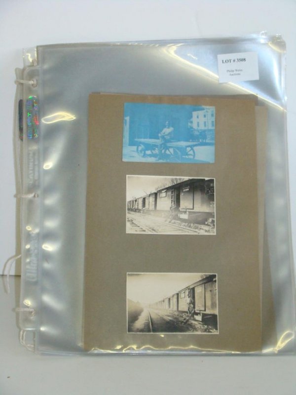 SoldAntique Railroad Snapshot photosapproximately 100 Black and White railroad photographs, snapshots of Engines, Locomotives, Cars, Wrecks, stations, etc. These are later photos resembling real photo postcards.See Sold Price