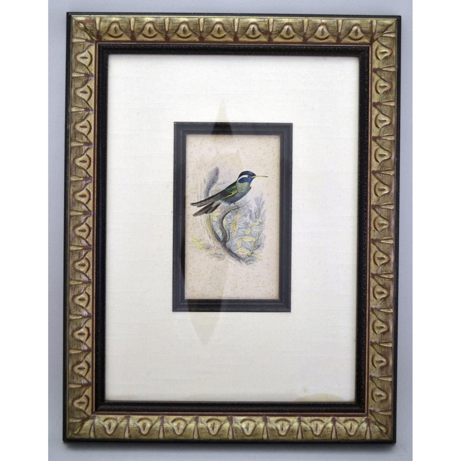 W.H. Lizars White Earred Hummingbird HC Engraving, 1840, W/Frame