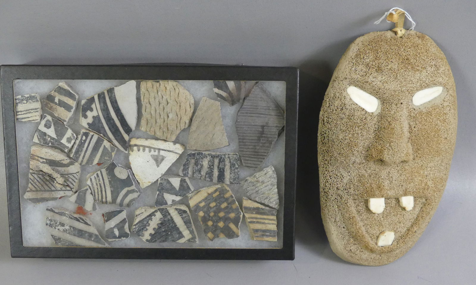 Assorted Arrowheads, Points, Spheres and Artifacts LotMar 16, 2026Lot of 2 antiquities. Carved Greek or Roman head fragments. 5in and 2.75in high. Provenance: From a7 days LeftNative American Stone Axe Heads, Celts, Hand Tools, Metate ArtifactsMar 16, 2026Pre-Columbian Valdivian Style Face Fragment 4p LOTMar 11, 2026Pre-Columbian Valdivian Style Face Fragment 4p LOTMar 11, 2026Group of Antiquities, Ethnographic Objects and World Art4 days LeftA POLYCHROME WOOD PUNU MASK, OKUYI, 18TH-19TH CENTURYMar 11, 2026Ancient Ikhoko amulets - PENDE - DR CongoInuit - Yua Mask made by the Yupik People who live on the West Coast of Alaska.Two Series of Native American Projectile PointsMar 12, 2026Pair Mexican Stone Mosaic Masks w Abalone Inlay | Onyx & Lapis Blue & WhiteMar 22, 20262 Vintage Carved Masks Mounted on Ebony in Japanese StyleMar 04, 2026Two Framed Series of Native American Arrowheads with Tooth NecklaceMar 12, 2026Native American Arrowheads and PointsMar 12, 2026Frame Of Native American Pottery ShardsMar 19, 2026Ancient Near Eastern Stone Maskettes (2)5 days Left