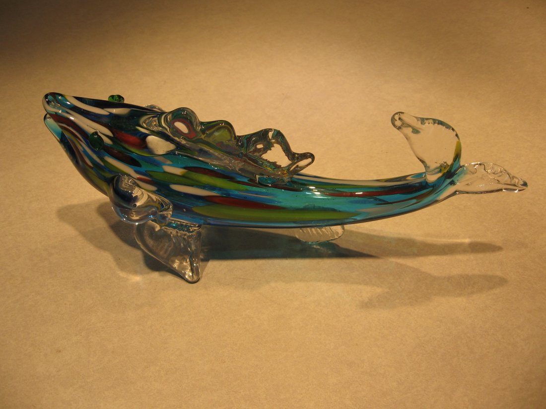 Unmarked Sommerso Dolphin Bubble Glass Paperweight