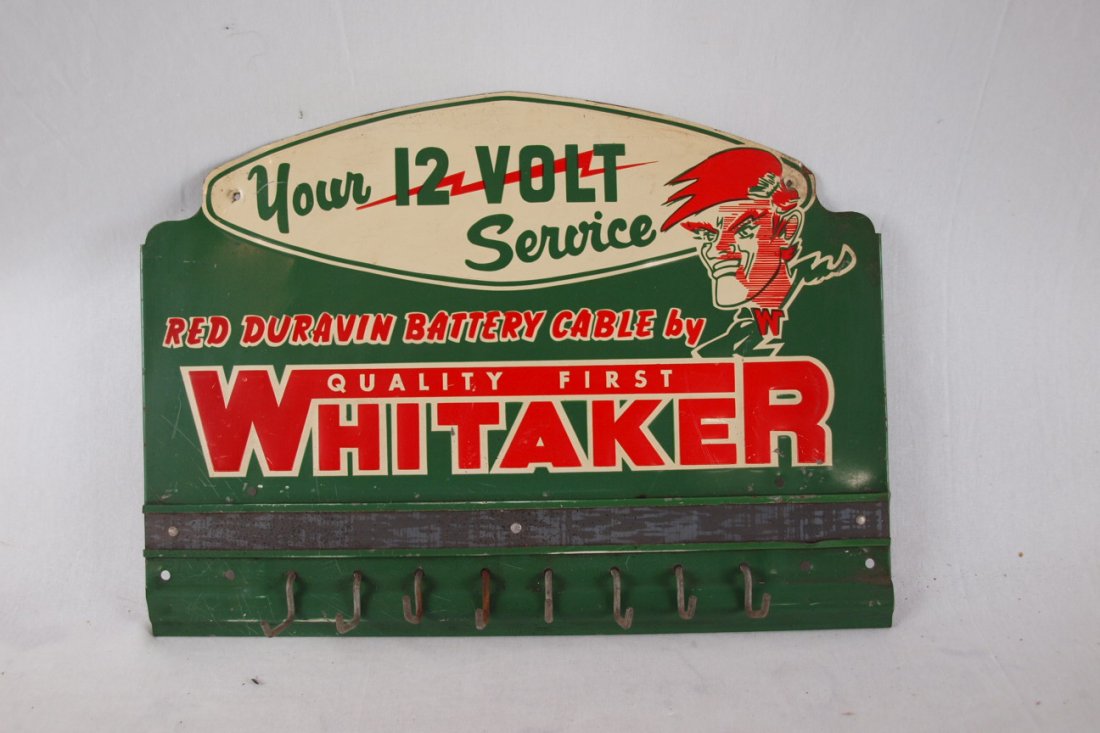 Whitaker battery cable display sign, missing 2 hooks,