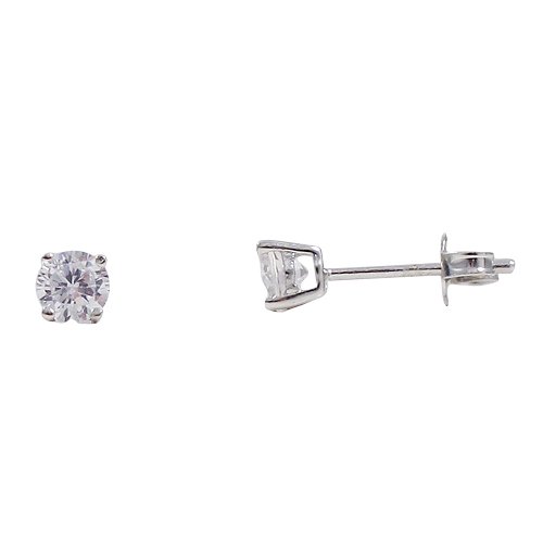 White 4mm CZ, Sterling Silver Post Earrings