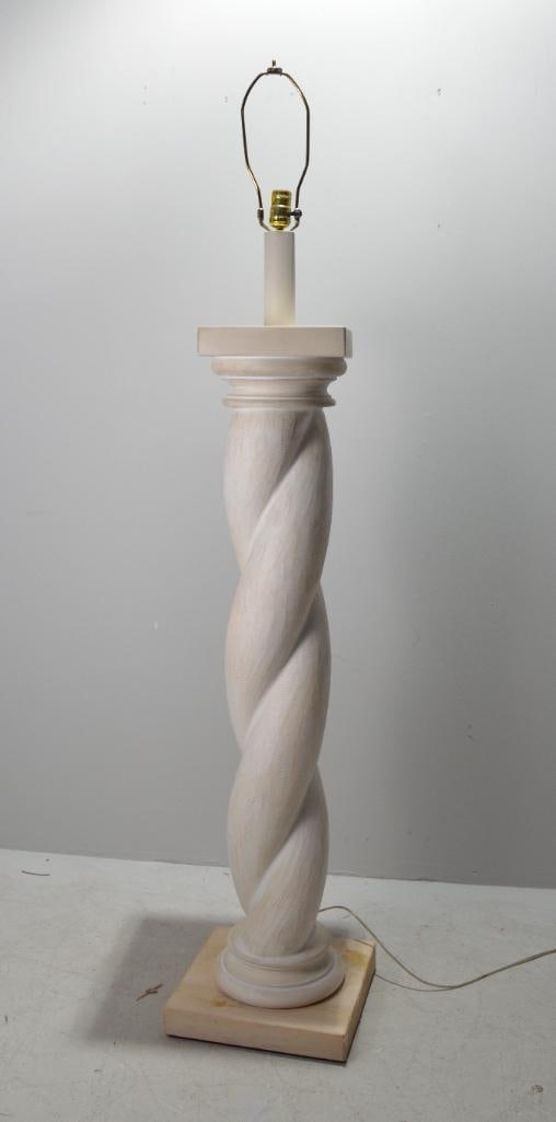 Vintage Carved Wood Painted Shabby Chic Standard Lamp