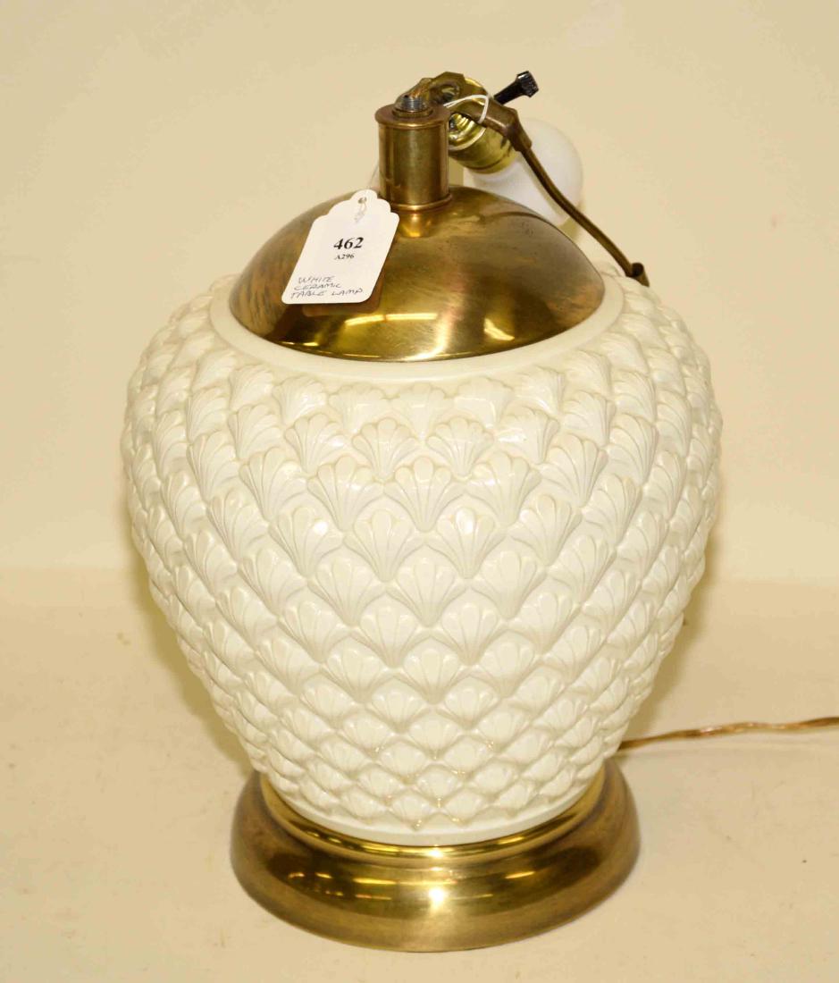 SoldMID-CENTURY WHITE CERAMIC TABLE LAMPDimensions: (Overall) H 29.5" x Dia. 10" Condition: Some age staining and crazing.See Sold Price