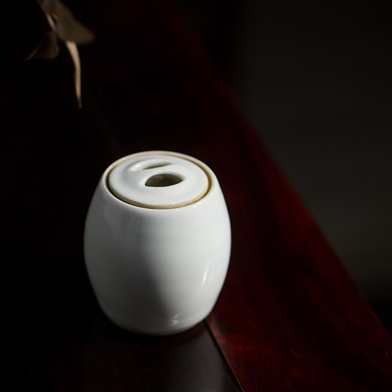 White glazed drum-shaped small lidded jar