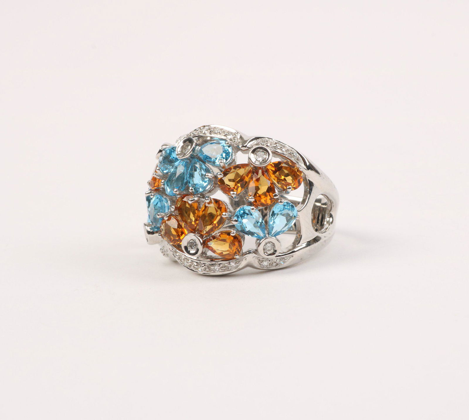 White gold gemstone & diamond ring