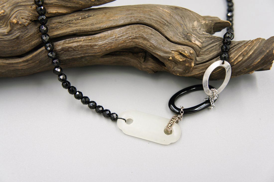 WHITE JADE AND BLACK AGATE NECKLACE