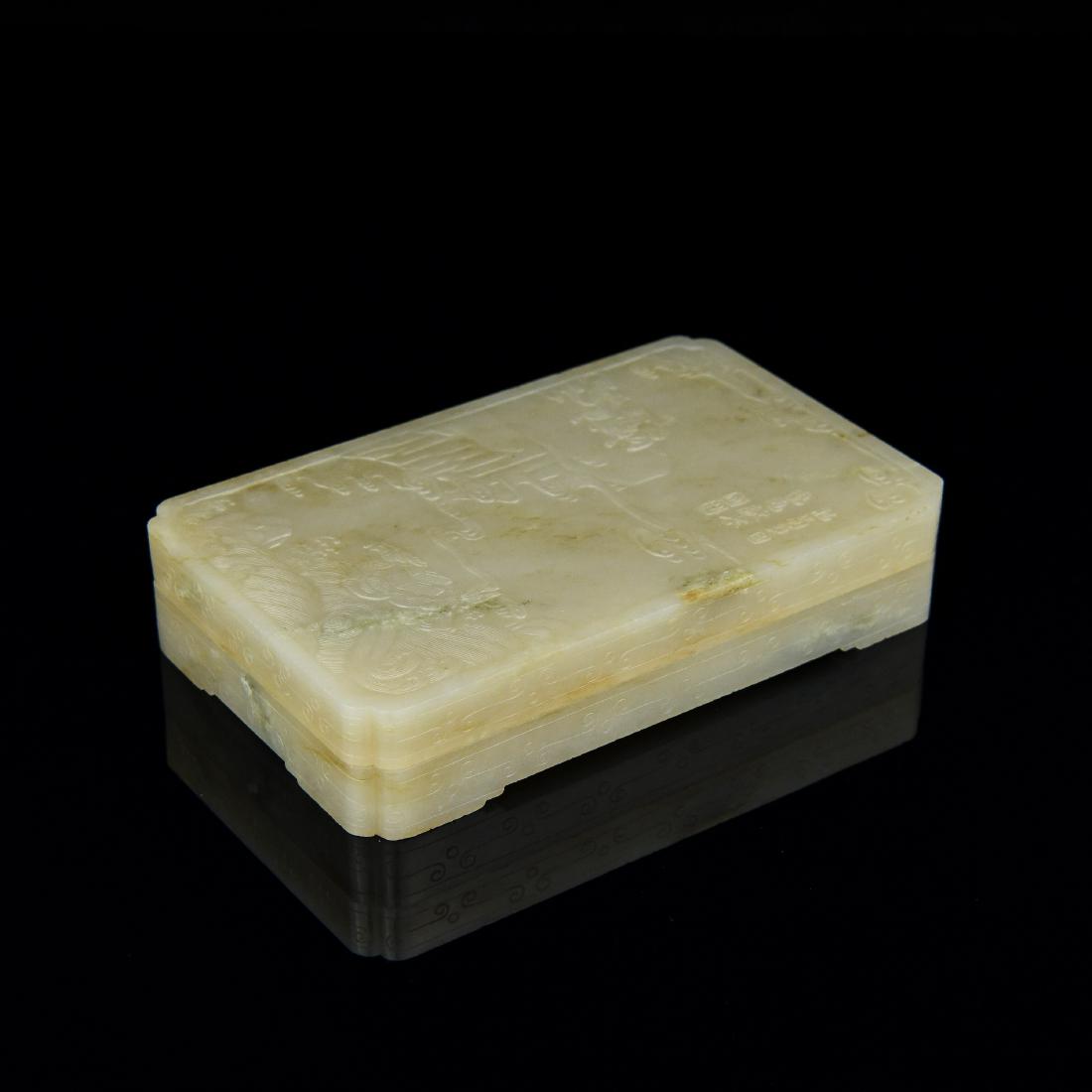 An exquisite white jade poetry box