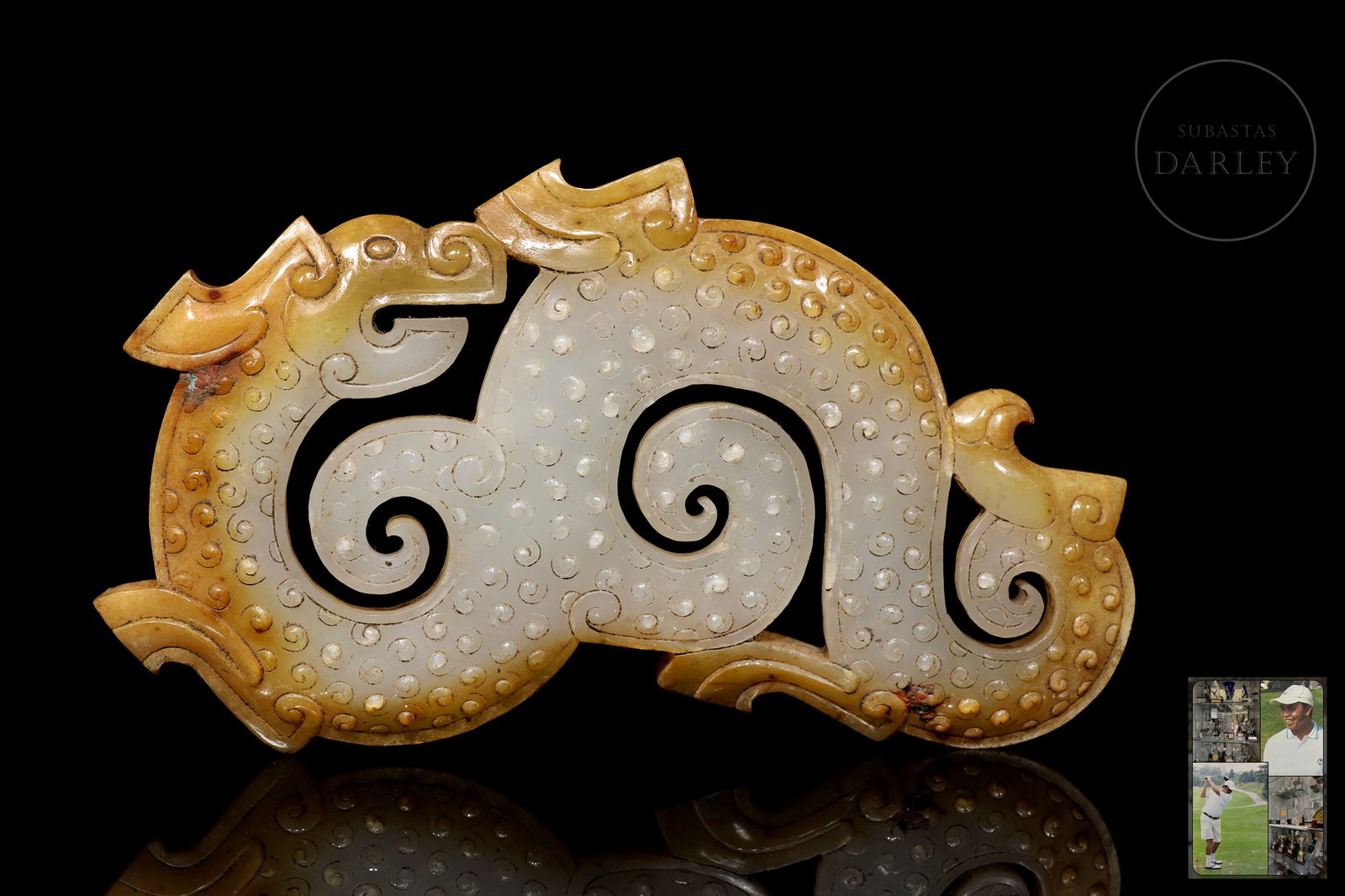 Archaic Jade Dragon Pendant Bi Disc, Openwork, Old Hotan White Jade, Han DynastyMar 04, 2026A RARE DARK GREEN AND BROWN JADE 'TIGER' PENDANT, SPRING AND AUTUMN PERIODMar 12, 2026A WHITE JADE 'TWIN DRAGON' PRINCIPAL PENDANT, HENG, EASTERN ZHOU PERIODMar 12, 2026An Exquisite White Jade Inlaid Turquoise With Inscription Dragon Pendant3 days LeftLarge Chinese Russet Jade Dragon Pendant3 hrs LeftAn Exquisite White Jade Dragon PendantMar 04, 2026Jade pendant with dragons and phoenixes5 days LeftA VERY RARE WHITE JADE 'DOUBLE PHOENIX' PENDANT, LATE WARRING STATES PERIOD TO EARLY WESTERN HANMar 12, 2026Hetian Jade Dragon PendantMar 06, 2026A Chinese Archaistic-Style Hetian Jade Dragon Plaque, 20th Century, 73FH3 days LeftA CELADON AND RUSSET JADE 'DRAGON' PENDANT, EASTERN ZHOU PERIODMar 12, 2026Exquisite antique collection, Hetian jade dragon pendant, unearthed and fully patinated.9 hrs LeftA RARE AND MAGNIFICENT WHITE JADE 'DOUBLE-DRAGON' PENDANT,HUANGWARRING STATES PERIOD (475-221 BC)1 day LeftA CARVED WHITE JADE DRAGON PLAQUEMar 01, 2026A Qing Dynasty Hetian jade color dragon pattern pendantMar 22, 2026A Chinese Hetian Jade Openwork Beast Plaque, 20th Century, 49FH3 days Left