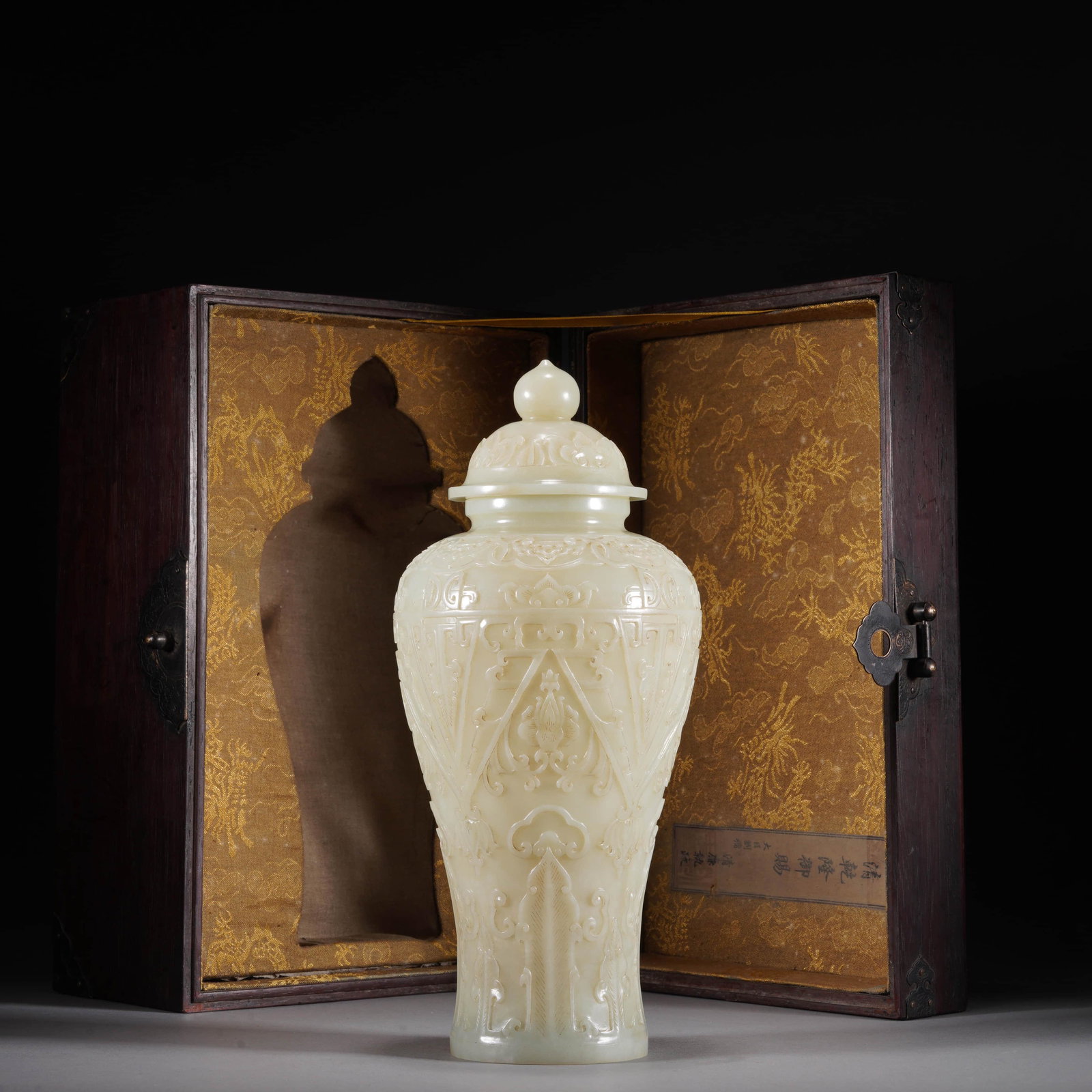 Chinese White Jade Covered Urn Lamp5 days LeftA BLUE-AND-WHITE JADE HU SPRING VASE WITH INTERTWINING FLORAL MOTIFSMay 02, 2026A HUANGHUALI WOOD SCREEN INLAID WITH HETIAN WHITE JADE FLOWER VASE PATTERNApr 30, 2026HAN DYNASTY HETIAN JADE EMBOSSED CHILONG PATTERN SQUARE VASE3 days LeftHetian White Jade Double-Eared Vase with Gold Mounting and InlayApr 25, 2026Chinese Porcelain Palace VasesApr 23, 2026A BLUE-AND-WHITE UNDERGLAZE-RED JADE HU SPRING VASE WITH FLOWER-AND-BIRD MOTIFSMay 02, 2026An Exquisite White Jade Vase PendantApr 25, 2026Chinese White Jade Carved Flower Beast Double Ears Vase Bottle117 Lots AwayA Exquisite Hotan White Jade VaseApr 25, 2026Qing Dynasty, blue and white jade huchun vase with banana leaf patternApr 25, 2026An Exquisite White Jade Landscape and Figure Pattern VaseApr 25, 2026An Exquisite White Jade Double-Ears Vase,With PoemMay 12, 2026An Exquisite White Jade Landscape and Figure Pattern VaseMay 05, 2026YUAN DYNASTY BLUE AND WHITE COILED FLOWER PATTERN JADE HUCHUN VASE3 days LeftAn Exquisite White Jade Altar City Pattern Double-Ears Vase4 days Left