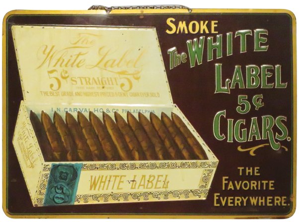 White Label 5 Cent Cigar Embossed Tin Sign