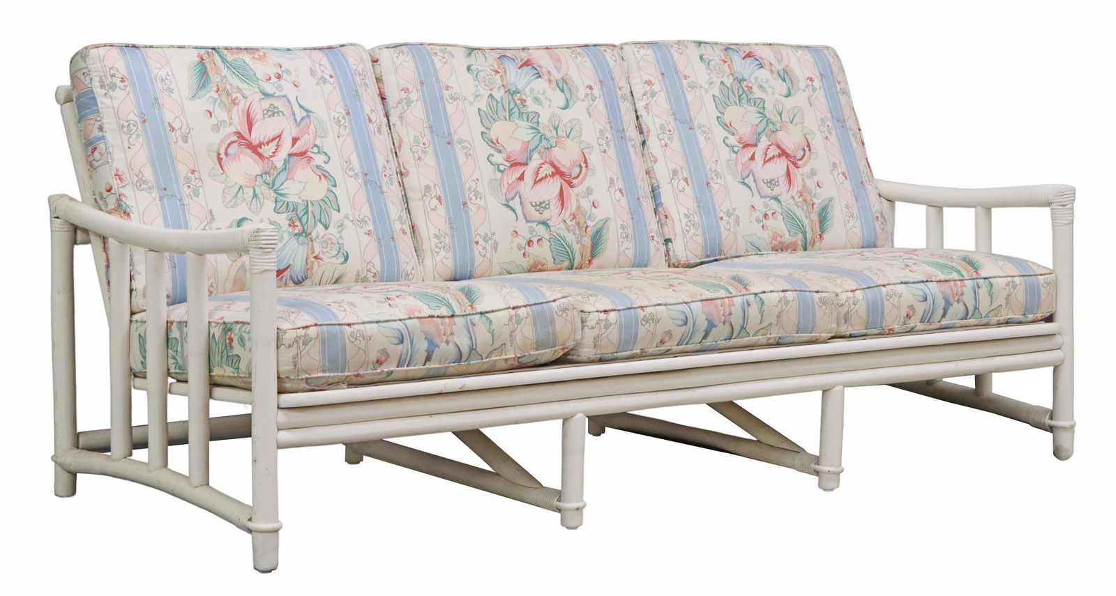 WHITE-PAINTED RATTAN THREE-SEAT SOFA