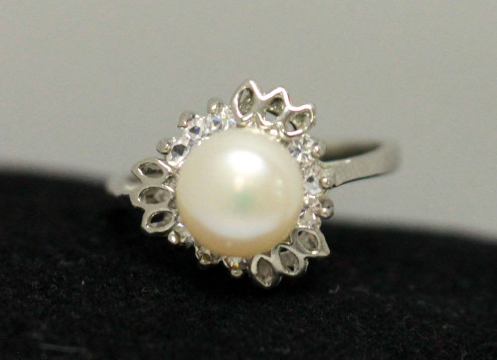 14K WHITE GOLD RING WITH SINGLE PEARL AND DIAMONDS (SIZE: 5.25)Modern Jewelry4.5(204)$1,4756 days Left
